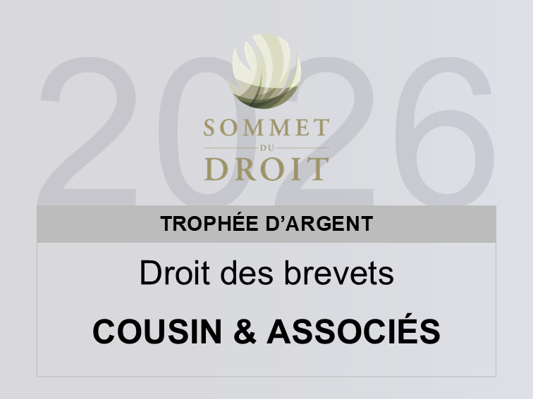 Le jury du Sommet du droit 2021 a accordé à Cousin & Associés une belle mention spéciale dans la catégorie avocats / brevets .